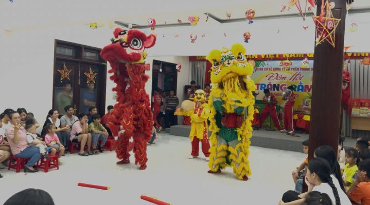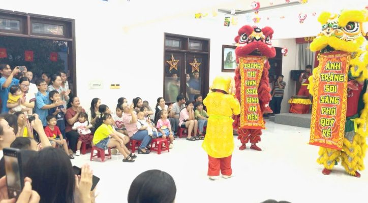 Ngay sau phần trao thưởng, chương trình chuyển sang phần hội sôi động. Tiếng trống lân, bộ múa lân nhịp nhàng cùng trang phục rực rỡ đã khởi tạo một không gian Trung Thu đúng chất: sôi nổi, náo nhiệt nhưng vẫn ấm áp. Các em nhỏ hào hứng xem biểu diễn, reo vui theo từng động tác, từng tiếng trống – khoảnh khắc ấy vừa là giải trí, vừa là sự kết nối giữa thế hệ đi trước và trẻ nhỏ, giữa truyền thống và hiện tại.